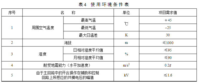 4?使用環境條件表?0.4kV低壓電纜分支箱使用環境條件見表4。特殊環境要求根據項目情況進行編制。
