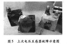 2011年3月30日0:38,35kV垣潔線、35kV垣宏回A、B相電壓互感器擊穿,如圖5所示;2012年3月26日19:7:58,35kV垣潔線56號線路電壓互感器A、B、C相損壞,A、B相有迸裂現(xiàn)象。